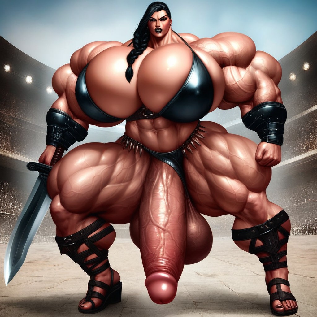 Holding Sword, Hyper Massive Muscles, Vascularity Транссексуалы AI порно