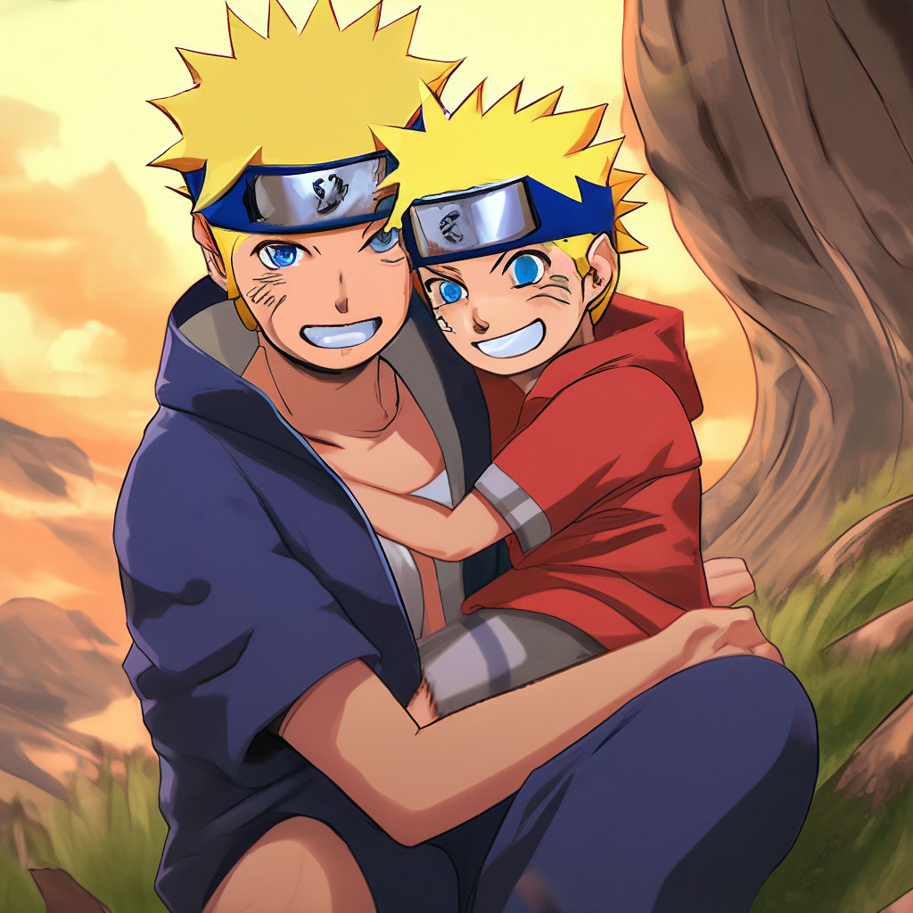 Наруто держит своего сына боруто киберреализм RTX глаза реализм" - картинка созд